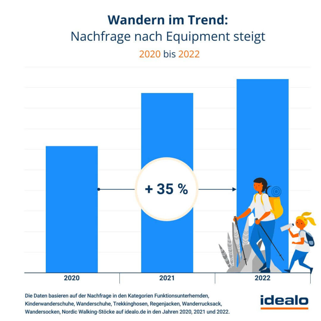 - Bei Wanderschuhen und Wandersocken ist der Bedarf bei Damen und Herren um 60 % gestiegen. Bei Kindern beläuft sich die Zunahme auf etwa 31 %.